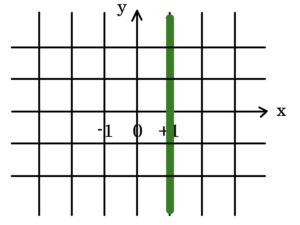 - 軸が2つ(x軸とy軸)の世界では、x=1は平面上の直線になる(x=1、y=全ての数)