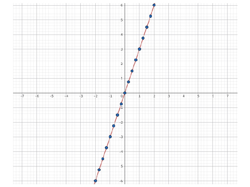 | y | -6 | -5.25 | -4.5 | -3.75 | -3 | -2.25 | -1.5 | -0.75 | 0 | 0.75 | 1.5 | 2.25 | 3 | 3.75 | 4.5 | 5.25 | 6 |