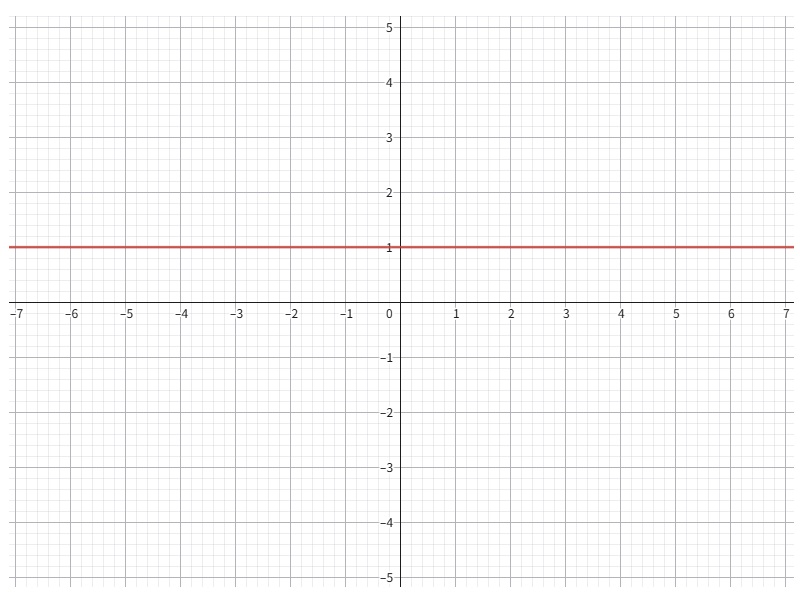 同様に考えて、今度は関数 y=1 のグラフを描いてみましょう。