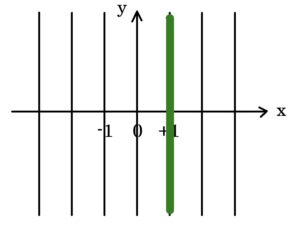 集合で表すと { $x, y | x=1, y \in R $ } です。
