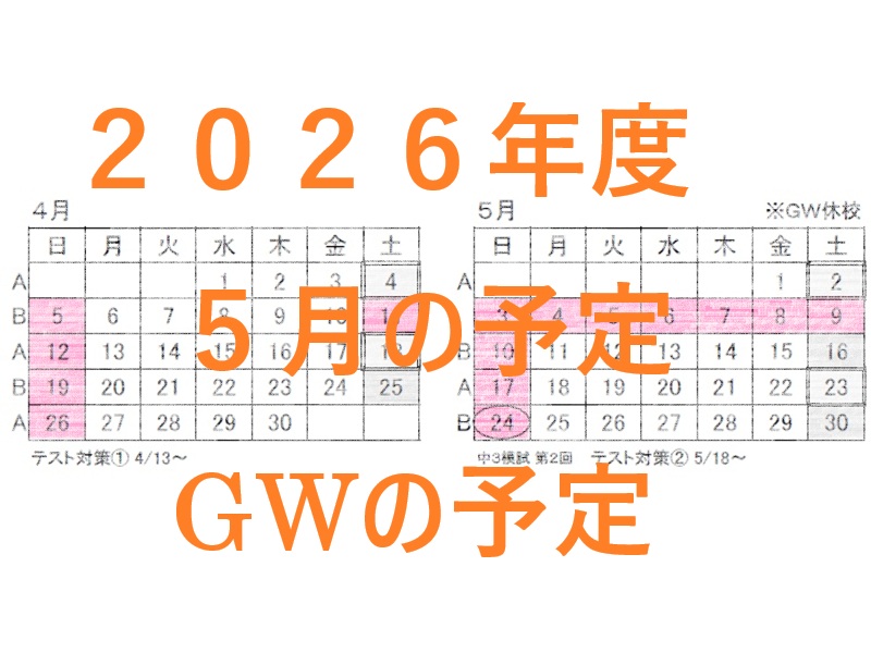 当塾の5月の予定については、お配りしている年間カレンダーの通りです。